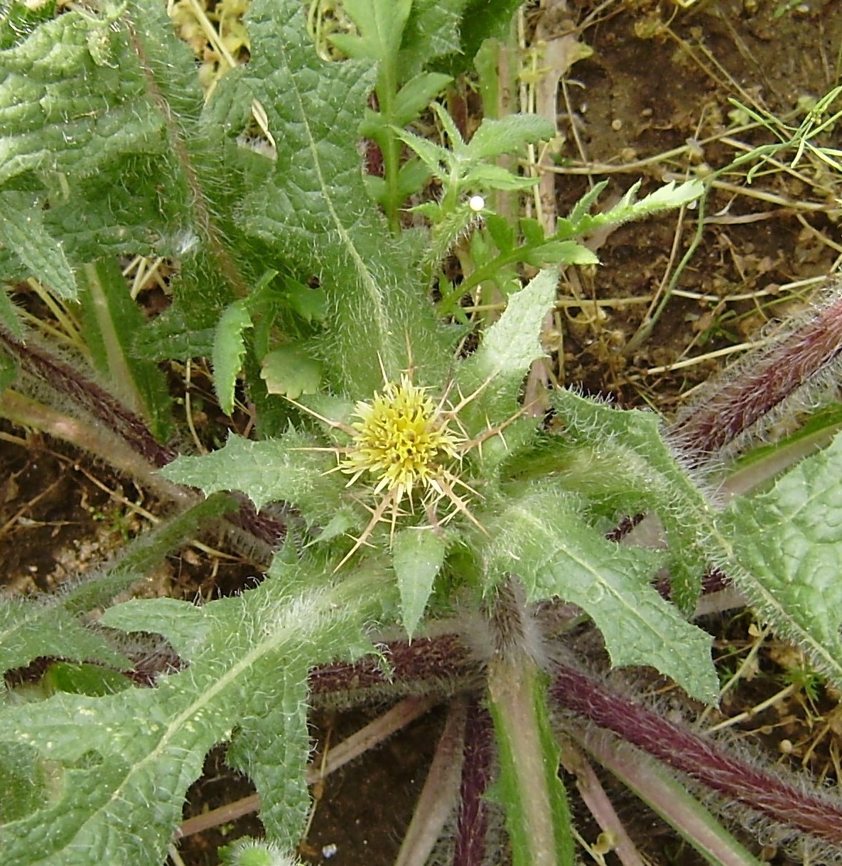 4 photos. Cnicus benedictus L. syn. Centaurea benedicta (L.) L. Κνίκος ο βενέδικτος, Κενταύρια η βενέδικτος, Αγιάγκαθο, Καρδοσάντο, Καλάγκαθο. St. Benedict’s thistle, Blessed thistle, Holy thistle, Spotted thistle